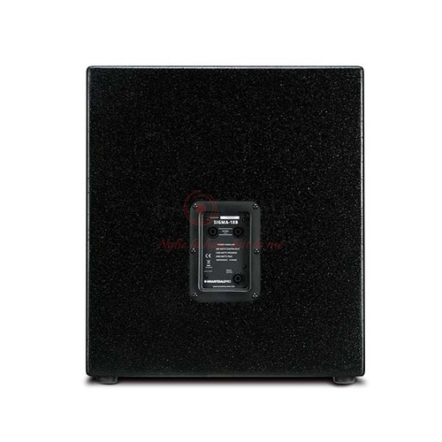 Mặt sau là tên model, thông số kỹ thuật cùng 2 cổng kết nối Speakon/ Thru cho phép người dùng dễ dàng kết hợp cùng các thiết bị khác trong dàn âm thanh.
