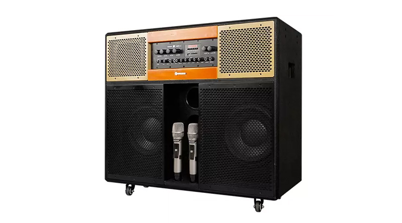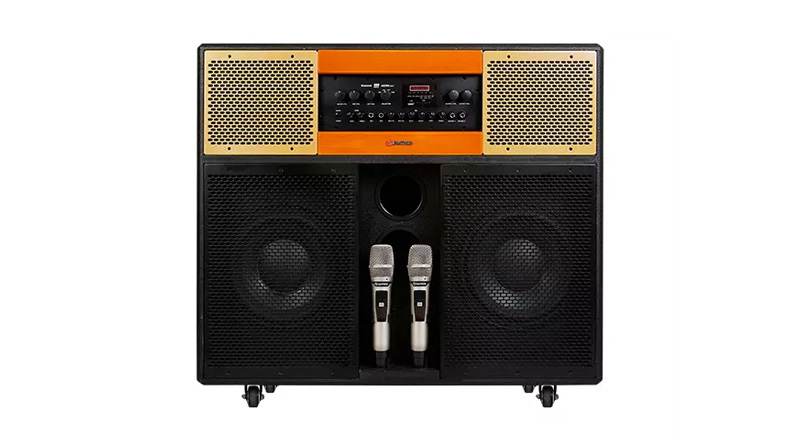 Hai chiếc micro đi kèm được thiết kế đặc biệt cho phép tùy chỉnh các thông số như âm lượng, bass, treble và echo để hỗ trợ tối ưu nhất cho giọng hát của người dùng.
