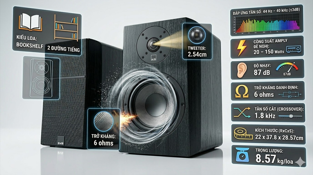 Với kích thước gọn gàng nhưng cấu trúc chắc chắn, SVS Ultra Evolution Bookshelf không chỉ là một thiết bị âm thanh mà còn là một điểm nhấn nội thất cao cấp, phù hợp cho nhiều không gian từ phòng khách đến phòng nghe nhạc chuyên biệt.