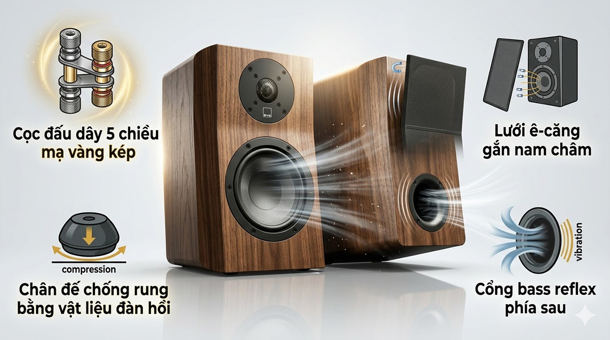 - Hệ thống stereo 2.0/2.1: Dễ phối ghép với ampli và subwoofer, tạo hệ thống âm thanh mạnh mẽ hoặc tập trung vào âm hình chi tiết.