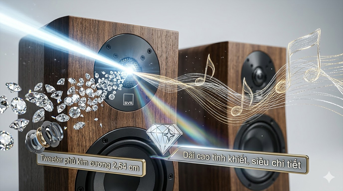 Tweeter phủ kim cương 2,54 cm – Dải cao tinh khiết, siêu chi tiết