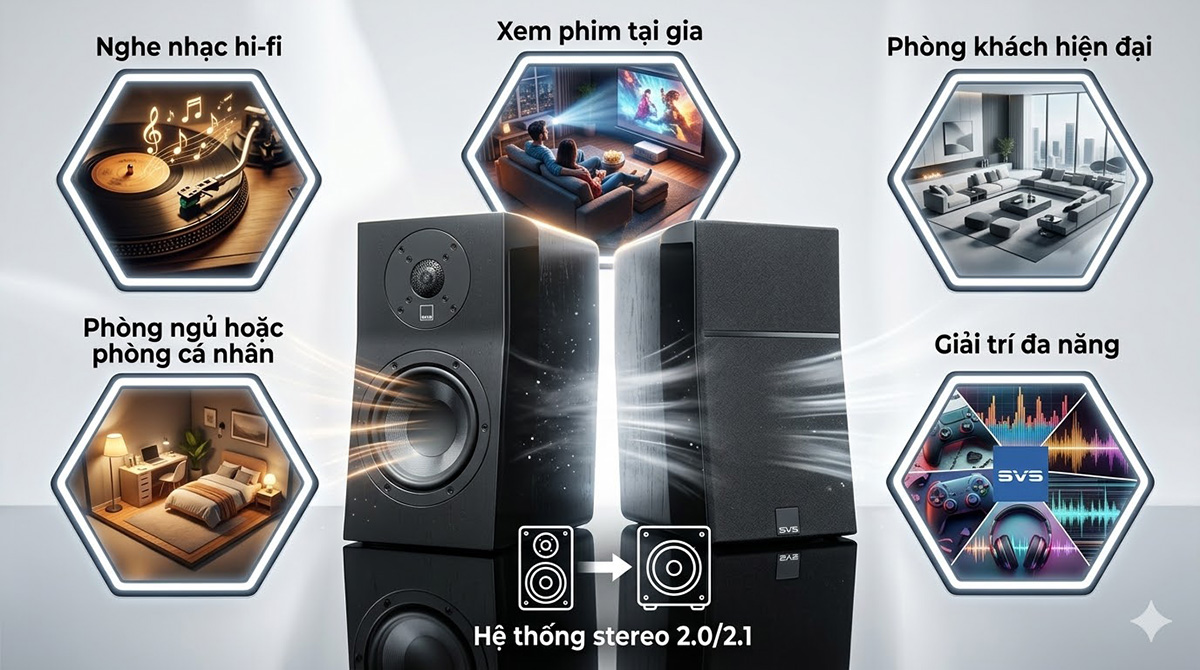 - Phòng khách hiện đại: Thiết kế nhỏ gọn và thẩm mỹ cao giúp loa dễ bố trí, vừa mang lại âm thanh chất lượng vừa là điểm nhấn nội thất sang trọng.