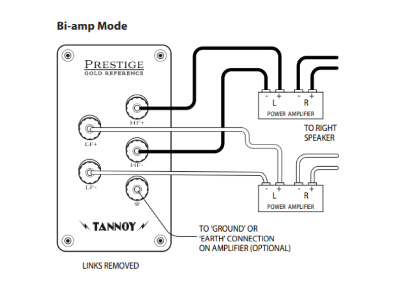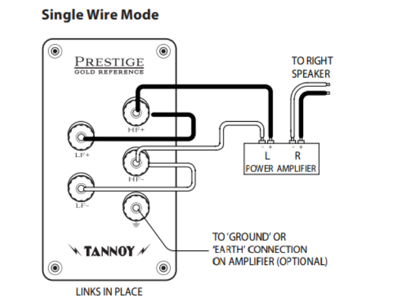 - Single-wire (dây đơn): sử dụng thanh nối giữa cọc loa HF và LF, sau đó kết nối 1 cặp dây (+/–) từ ampli sang loa.