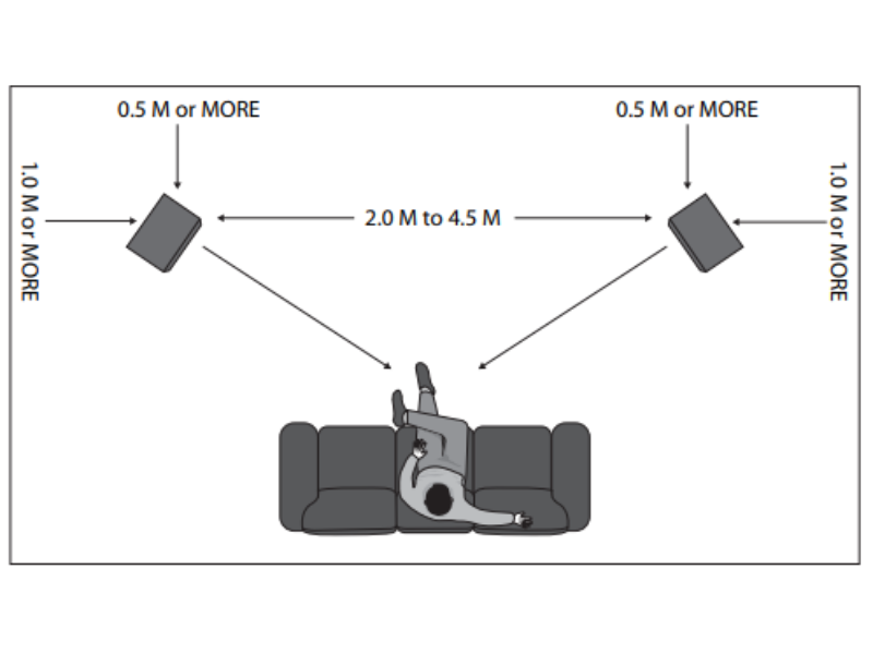 - Đặt loa cách tường bên ít nhất 1m và cách tường sau tối thiểu 0,5 m để giảm hiện tượng dội âm.