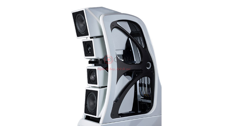 Khung sườn nhôm “kiến trúc mở” giúp ổn định vị trí của các củ loa. Đồng thời, các mô-đun củ loa được đặt trên “đường ray” di động, cho phép dễ dàng cân chỉnh vị trí củ loa, đặc biệt quan trọng cho việc đảm bảo pha thời gian chính xác nhất.