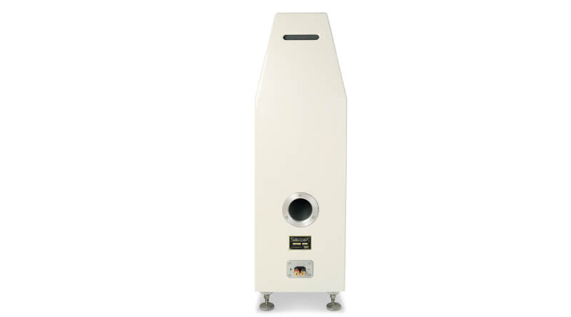Vỏ ngoài được chế tác hoàn toàn từ X – Material, một vật liệu vô song trong số các vật liệu làm tủ hiện có, vừa có độ bền như thép vừa có hiệu suất hấp thụ rung động vượt trội, một sự nâng cấp tối ưu so với mẫu loa tiền nhiệm Sabrina trước đó khi chỉ được sử dụng ở phần mặt loa và phần chân đế.