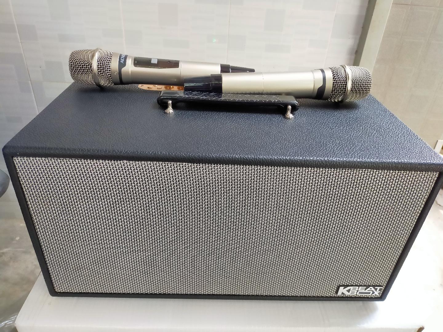 Loa kéo Acnos CS450Alpha kèm theo 2 micro không dây UHF với thiết kế vỏ nhôm cầm rất chắc chắn, nhẹ tay màu vàng đồng bắt mắt. Micro có khả năng hút âm, bắt mic tốt, nhẹ hơi, dễ hát.