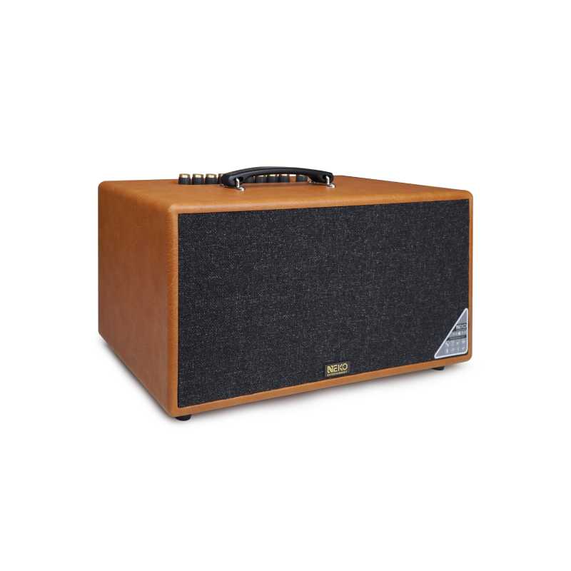 Loa di động Neko NK600 được trang bị miếng ê căng bằng vải mềm ở mặt trước, giúp bảo vệ các linh kiện bên trong. Phần vỏ gỗ bọc da xung quanh loa có 2 màu sắc để người dùng dễ dàng lựa chọn theo phong cách cá nhân.