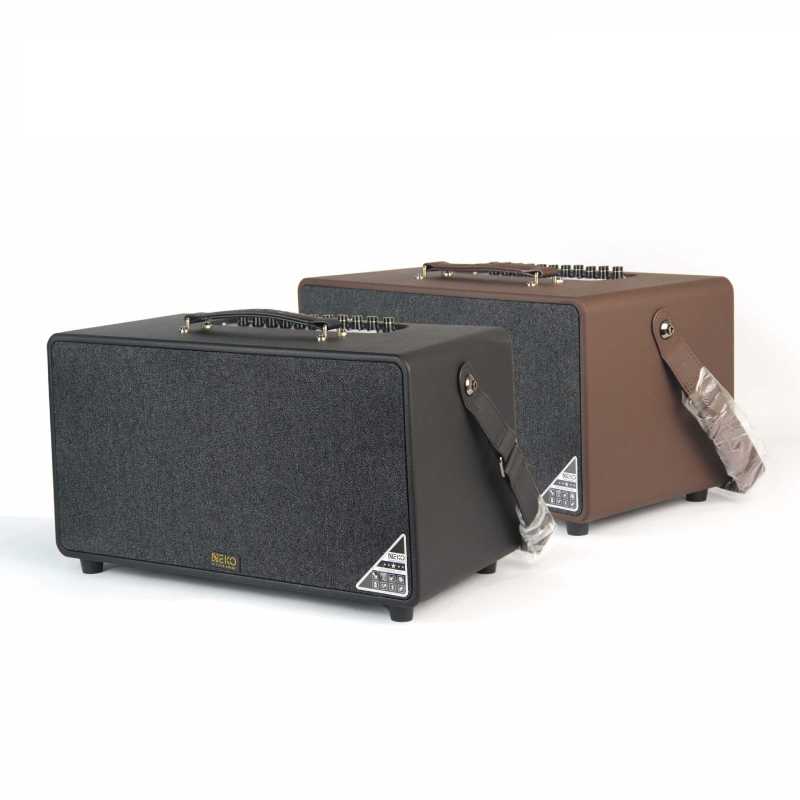 Loa di động NEKO NK800 được thiết kế với thân ván ép phủ da PU cao cấp mang lại vẻ ngoài tinh tế, sang trọng như bao da hàng hiệu. Với mặt trước được bọc lớp vải đặc biệt, loa sử dụng các khuyên nhựa cứng để bảo vệ màng trong khỏi bụi và chống sốc.