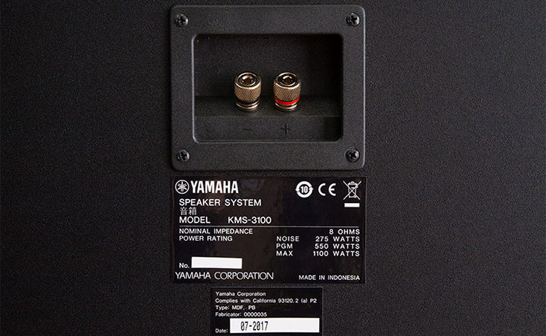Mặt sau của loa karaoke yamaha KMS 2600 bao gôm một bảng kết nối, bộ phận quan trọng của loa. Các đầu kết nối của loa đều là cài dây