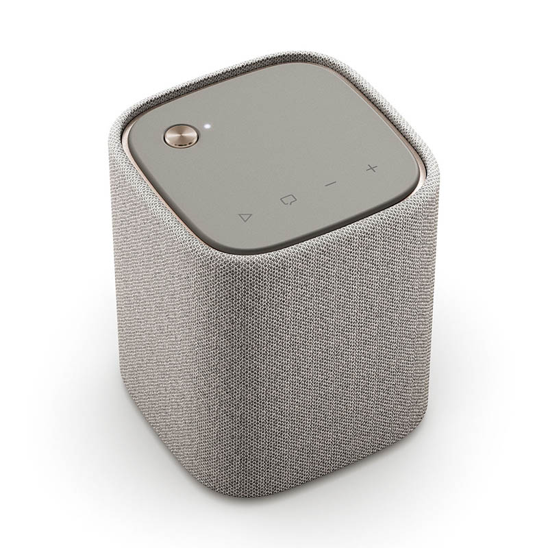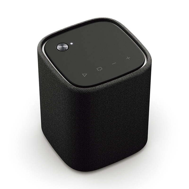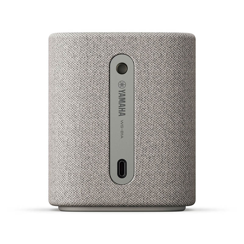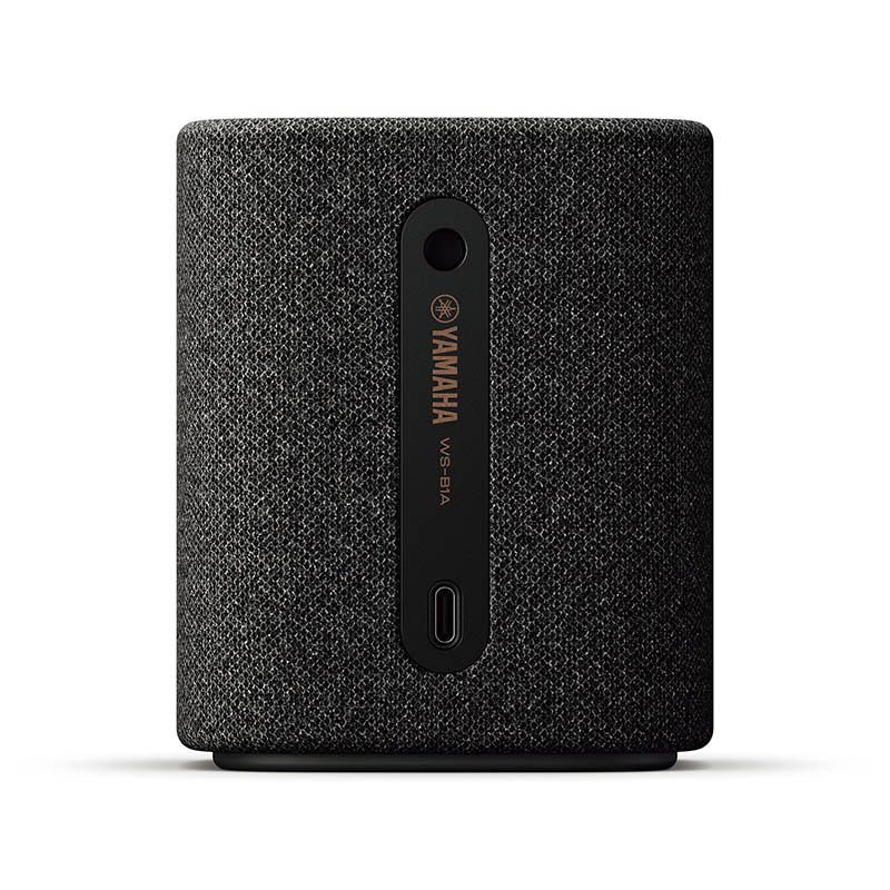 Mặt trên của loa có bề mặt phẳng với các phím điều khiển cảm ứng, nút bật tắt thiết bị và đèn LED báo hiệu thiết bị đang bật. Yamaha WS-B1A cũng có một cổng USB-C ở mặt sau, cổng này thường dùng để sạc cho loa nhưng cũng cho phép truyền dữ liệu khi không kết nối Bluetooth. Các lỗ khóa bắt vít thô để treo loa lên tường nếu muốn.