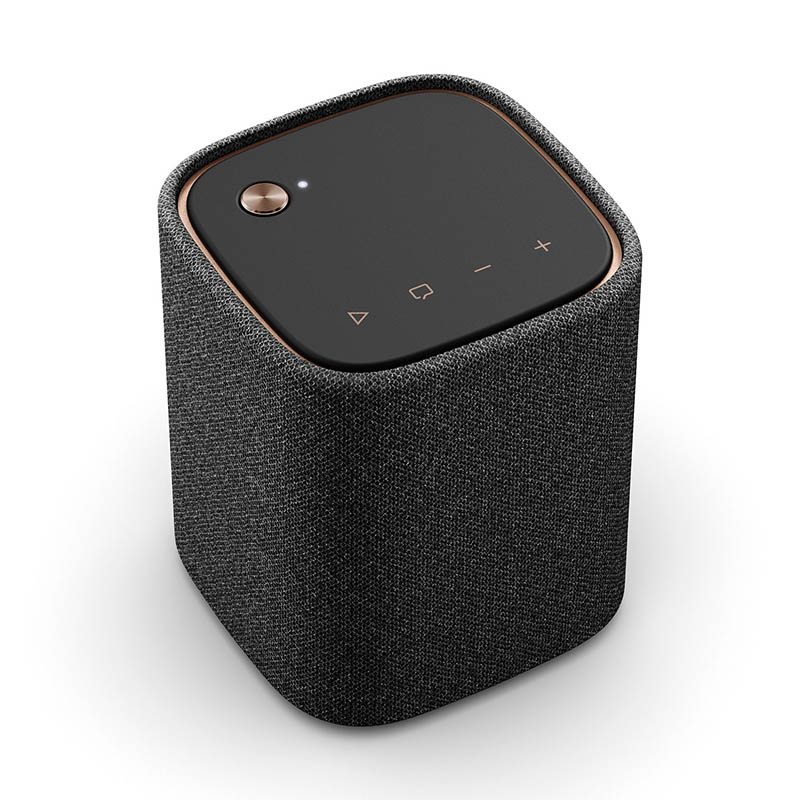 Không thể bỏ qua là nút nguồn lớn ở góc trên cùng với một đèn LED nhỏ sáng lên khi bật/tắt nguồn. Bạn cũng có thể điều khiển loa thông qua thiết bị di động được kết nối của mình.