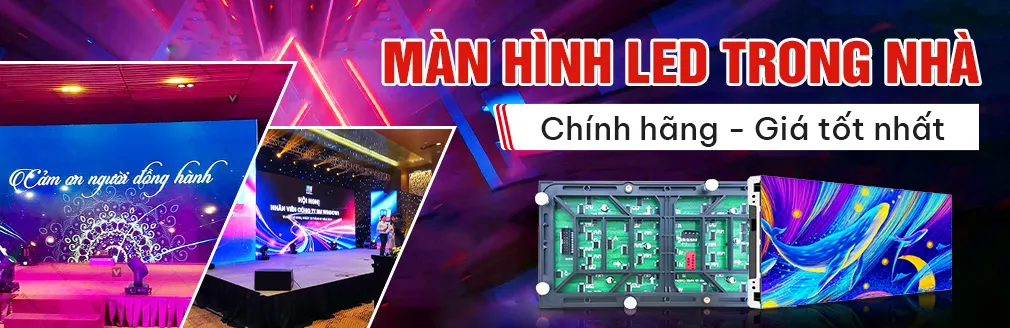 Màn hình LED trong nhà (hay còn gọi là LED Indoor) là loại màn hình hiển thị được lắp đặt và sử dụng trong môi trường nội thất như hội trường, phòng họp, sân khấu sự kiện, trung tâm thương mại, showroom… Đây là dòng sản phẩm dùng module LED SMD với độ sáng vừa đủ cho không gian kín và đặc biệt nổi bật nhờ khả năng hiển thị sắc nét, độ mượt cao.