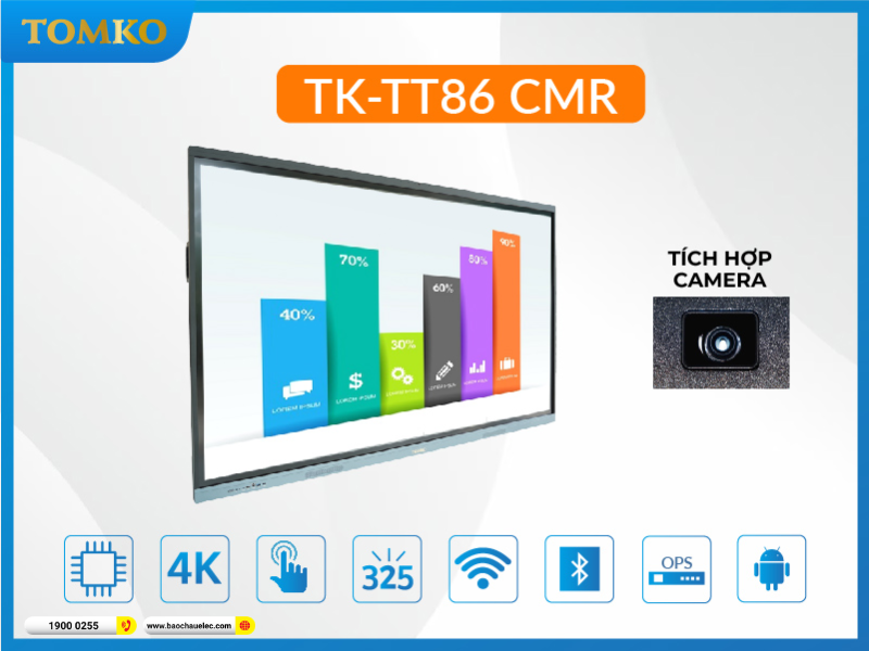 Màn hình tương tác 86 inch Tomko TK-TT86CMR là giải pháp màn hình tương tác tích hợp đầy đủ hiển thị 4K, camera, micro và cấu hình mạnh, tối ưu toàn diện cho hội họp và giảng dạy chuyên nghiệp.