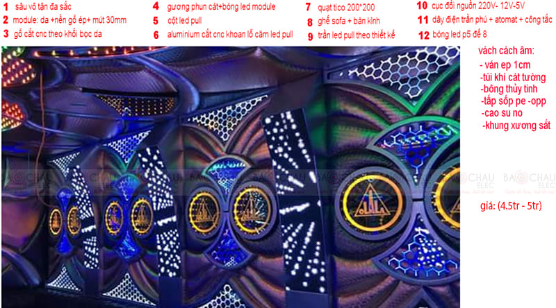 Với mỗi phòng karaoke trong cơ sở kinh doanh của bạn sẽ chúng tôi tư vấn thiết kế theo các mẫu phòng karaoke phong cách hoàn toàn khác nhau riêng biệt. Bảo Châu Elec sẽ giúp cơ sở kinh doanh karaoke của bạn đẹp, đẳng cấp nhưng đa dạng phong cách nhất để tránh sự nhàm chán cho khách đến hát. Hãy liên hệ ngay 0943.318.313 để được tư vấn miễn phí