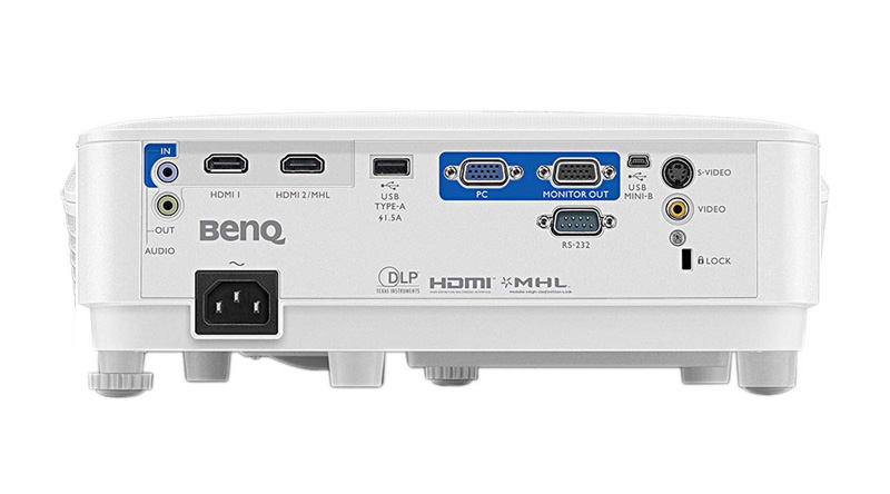 Bên cạnh chiếc điều khiển từ xa thì hệ thống nút điều chỉnh được bố trí ở mặt trên. Mặt sau đầy đủ cổng kết nối như 1 x Computer In (D-sub 15pin, Female), 1 x Monitor out (D-sub 15pin, Female), 1 x Composite Video (RCA), 1 x S-Video, HDMI-1, 1 x HDMI-2/MHL, 1 x Audio in(mini jack), 1 x Audio out (mini jack), 1 x USB TypeA (1.5A power), 1 x USB Type min B (For Page up/down and FW upgrade) 1 x RS232 In (D-sub 9pin, male), 2 x IR Receiver(Front+Top).