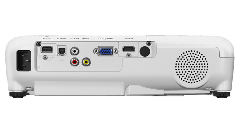 Epson EB-X41 được trang bị các cổng kết nối thông dụng ở mặt sau, bao gồm 1 x RCA (Yellow), 1 x D-sub 15-Pin (RGB), 1 x USB 2.0 type B, 1 x USB Type A, 1 x USB 2.0 Type B, 1 x HDMI, 2 x RCA (1 x White, 1 x Red), 1 x USB 2.0 type B, 1 x USB 2.0 type.