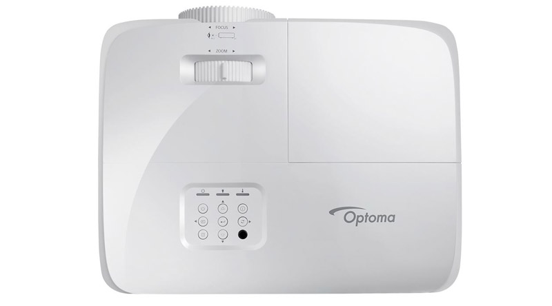 Mặt trên Optoma HD27e là Keystone cùng hệ thống phím chức năng được bố trí khoa học, rõ ràng.