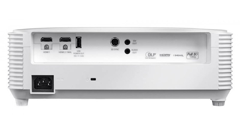 Các cổng kết nối đều được đặt ở mặt sau, bao gồm HDMI v1.4a x 1, HDMI/ MHL x 1, Âm thanh ra x 1, Kích hoạt 12V x 1, 3D-Sync x 1, USB-A Power (1.5A).