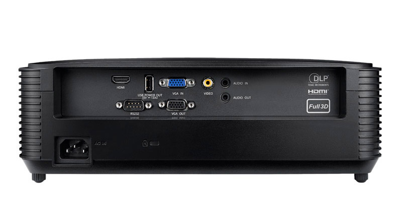 Mặt sau bao gồm cổng nguồn và các cổng kết nối thông dụng như HDMI V1.4a x 1, VGA-in x 1, VGA-out x 1, Composite x 1, Audio-in x 1, Audio-out x 1, USB Type-A x 1, RS232 x 1.