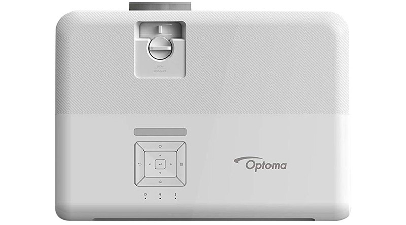 Mặt trước của máy chiếu là thiết kế vòng zoom nằm lệch sang phía phải được bảo vệ bởi một thấu kính. Các mặt bên của máy chiếu là hệ thống khe tản nhiệt, ở mặt trên là các nút điều chỉnh và tên thương hiệu Optoma.