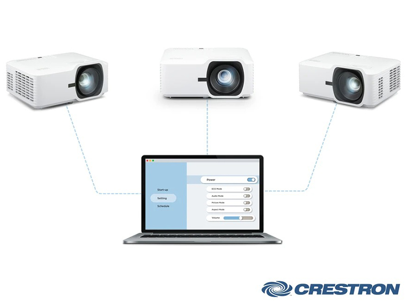 - Crestron®: Cho phép giám sát và điều khiển từ xa nhiều máy chiếu trong cùng hệ thống mạng nội bộ, tối ưu cho môi trường doanh nghiệp và trường học.