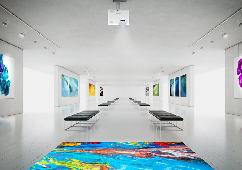- Trình chiếu 360°: Cho phép xoay máy chiếu ở bất kỳ hướng nào – trần, tường, sàn hay góc nghiêng – mở ra nhiều ý tưởng ứng dụng như trình chiếu sàn sân khấu, không gian nghệ thuật hoặc bảo tàng tương tác.