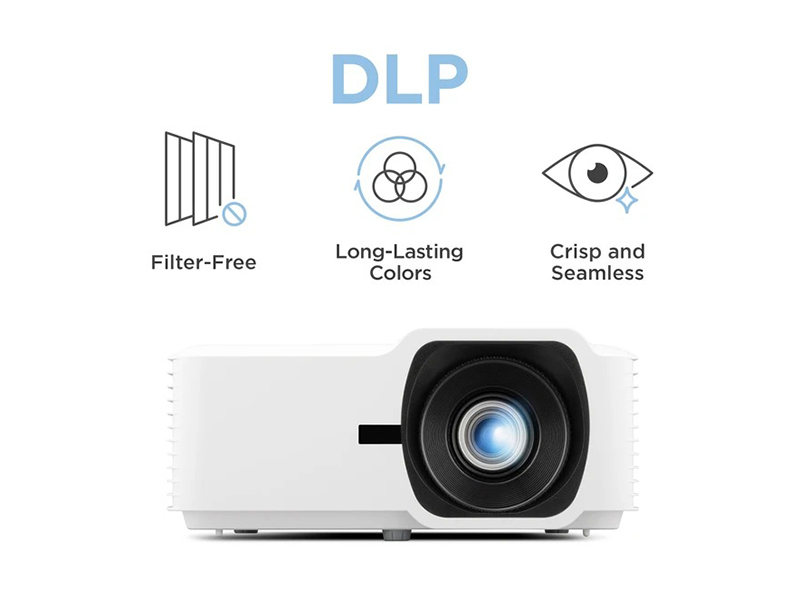 Máy chiếu ViewSonic LS630HD sử dụng công nghệ DLP tiên tiến, mang đến màu sắc ổn định theo thời gian, không bị ố vàng hoặc suy giảm độ sáng như máy chiếu LCD truyền thống. Khoang chiếu kín hoàn toàn, giúp ngăn bụi xâm nhập, loại bỏ nhu cầu thay hoặc vệ sinh bộ lọc định kỳ. Hình ảnh sắc nét, liền mạch, loại bỏ hiệu ứng “lưới pixel”, đảm bảo trình chiếu mịn màng và chuyên nghiệp.