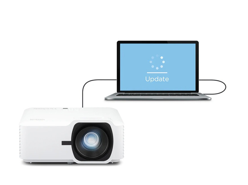 Không cần mang máy đến trung tâm bảo hành, người dùng có thể cập nhật phần mềm (firmware) trực tiếp qua kết nối USB với laptop. Đây là giải pháp độc quyền của ViewSonic, giúp đảm bảo hiệu suất tối ưu mà không làm gián đoạn quá trình sử dụng. Tính năng này giúp tiết kiệm thời gian, giảm chi phí bảo trì và giữ cho máy chiếu luôn hoạt động ở trạng thái tốt nhất.