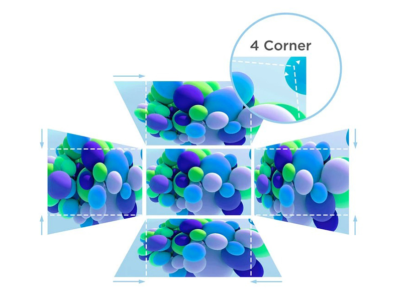 Để đảm bảo hình ảnh luôn cân đối và sắc nét dù lắp đặt ở vị trí nào, máy chiếu ViewSonic LS630HD được trang bị tính năng chỉnh lệch hình ngang (H Keystone) và dọc (V Keystone) cùng chế độ hiệu chỉnh 4 góc độc lập (4-Corner Adjustment).