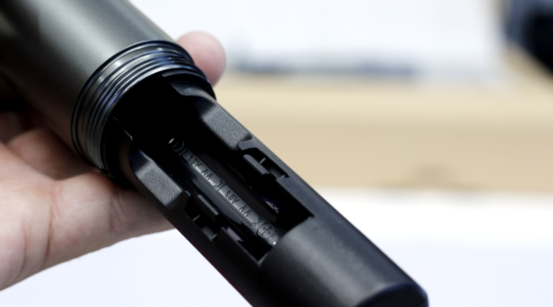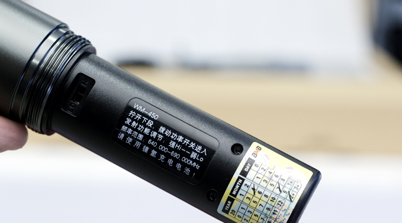 Phần thân micro không dây BMB WB-4500 có 1 màn hình LCD nhỏ hiển thị tần số sóng và lượng pin, 1 nút bật/ tắt nguồn của micro. Bên trên có logo BMB màu vàng nổi bật. Phần đuôi của micro có thể vặn mở dễ dàng để đựng pin.