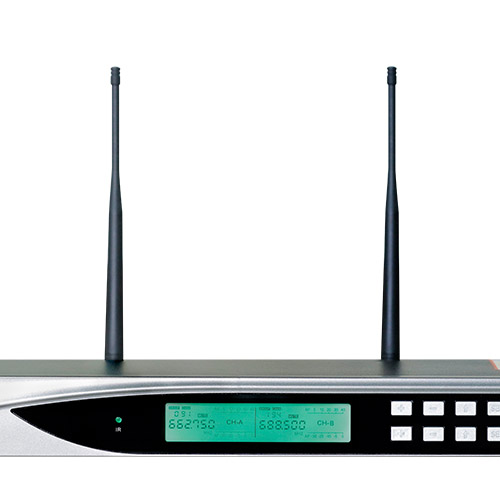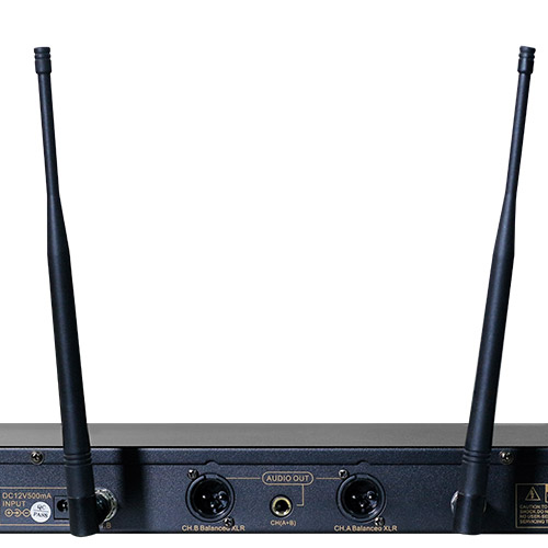 Mặt trước được bố trí đơn giản, tinh tế với các nút điều chỉnh, màn hình LED hiển thị thông số, quá trình hoạt động của micro. Mặt sau gồm các thông số kỹ thuật cơ bản, jack cắm và 2 ăng ten cho khả năng thu sóng nhạy bén, thông minh.