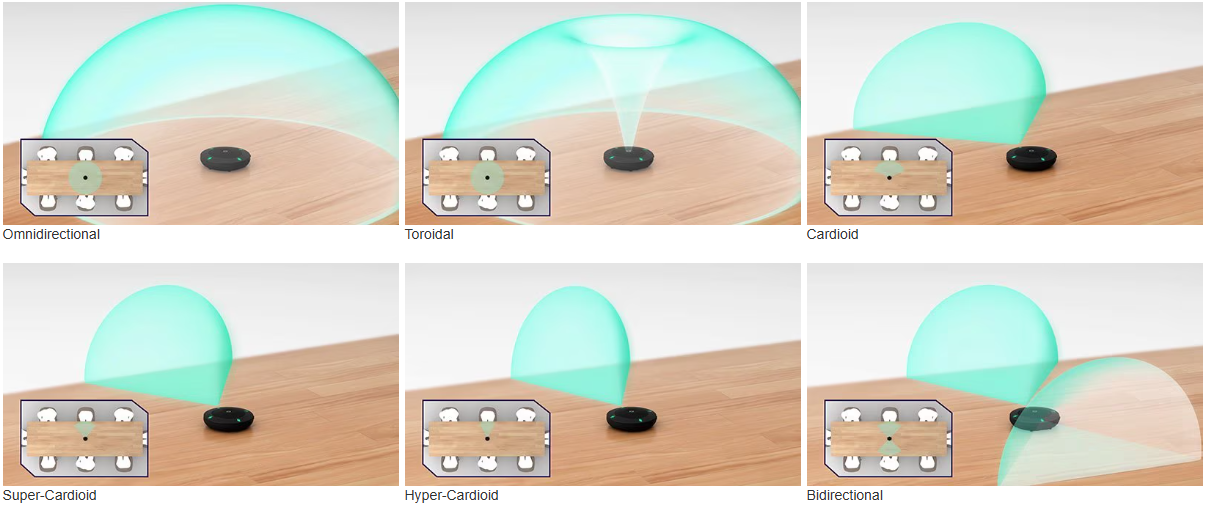 - Toroidal (Hình vòng): Loại bỏ tiếng từ trần nhà và sàn, tập trung vào khu vực xung quanh bàn họp.