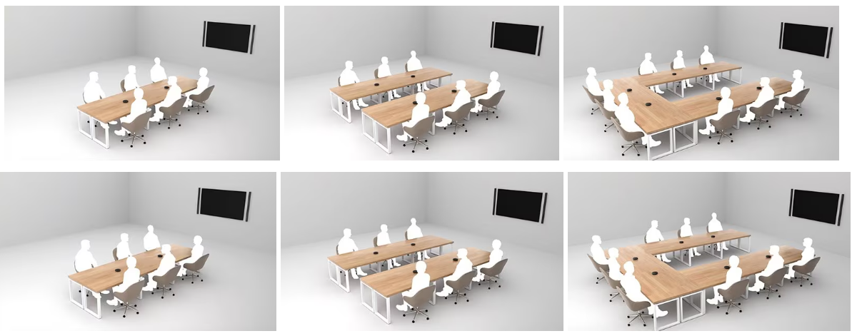 Micro Yamaha RM-TT không chỉ có khả năng theo dõi giọng nói thông minh, mà còn cho phép bạn tùy chỉnh hướng thu âm để phù hợp với cách bố trí phòng họp và số lượng người tham gia. Dưới đây là 6 kiểu định hướng micro bạn có thể lựa chọn: