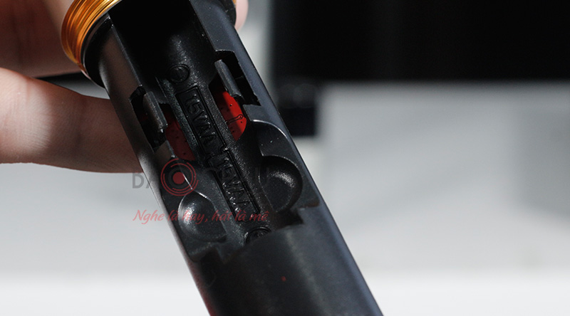 Phần thân micro được thiết kế một màn hình nhỏ hiển thị các tần số mic và nút nguồn thiết bị. Khay chứa pin đươkc thiết kế phần dưới cho người dùng dễ dàng tháo lắp, sử dụng.