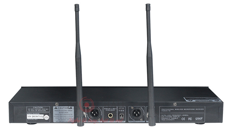 Đầu thu micro không dây có giao diện thiết kế chi tiết, dễ hiểu các phần chỉnh và hiển thị các kênh được bố trí logic và khoa học. Mặt sau được thiết kế với các cổng kết nối tín hiệu và các cổng kết nối với mixer.