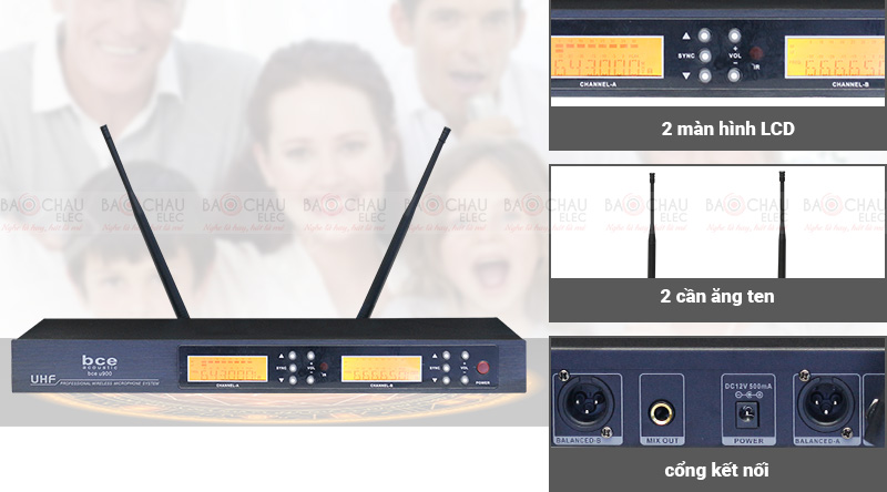 Micro không dây BCE U900 - dòng micro không dây chuyên dùng cho hát karaoke chuyên nghiệp có xuất xứ từ thương hiệu BCE đạt chuẩn Hoa Kỳ. Sở hữu dòng micro này người dùng sẽ có trải nghiệm thú vị từ thiết kế đẹp mắt đến chất lượng âm thanh, khả năng chống hú tốt, bắt âm nhạy sẽ làm hài lòng ngay cả những khách hàng khó tính nhất.
