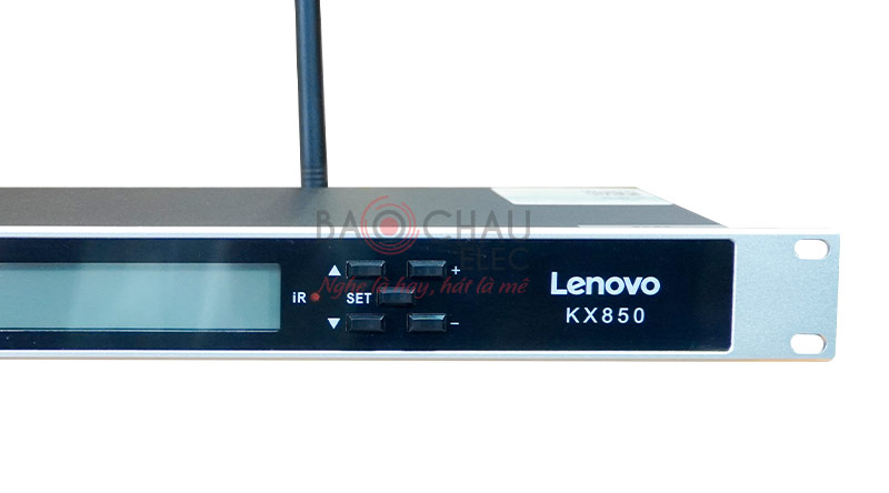Giữa tay cầm micro Lenovo KX850 được thiết kế một nút bật/tắt và một màn hình LCD nhỏ để hiển thị tần số và tình trạng pin của micro.