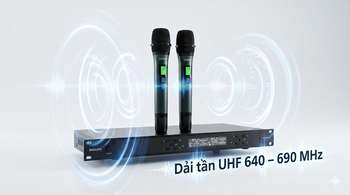 Một trong những điểm quan trọng của micro không dây là độ ổn định tín hiệu. Micro không dây Philips CSS3331/70 hoạt động trong dải tần 640 – 690 MHz, thuộc nhóm tần số UHF giúp truyền tín hiệu ổn định hơn so với các dòng micro giá rẻ sử dụng VHF.