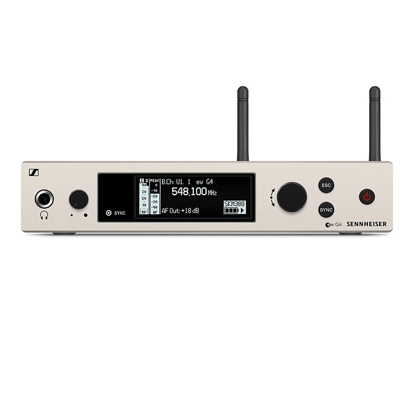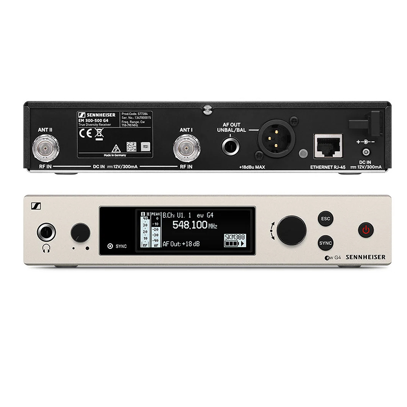 Bộ thu không dây Sennheiser EM 300-500 G4 hoạt động trong dải tần UHF và có thể sử dụng kết hợp với bộ phát đồng hành và micro (bán riêng), như một phần của hệ thống phát không dây RF cao cấp chuyên nghiệp.