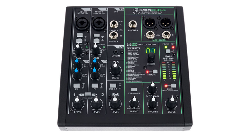 - Bộ trộn âm 6 kênh Mackie ProFX6v3 với 2x 4 giao diện USB