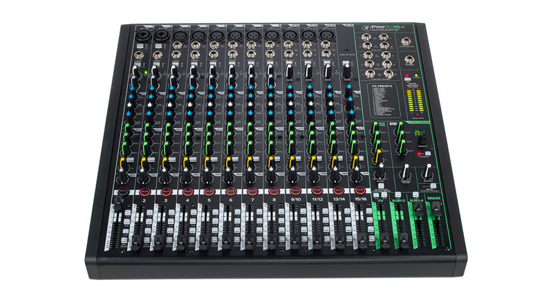 - 11 Đầu vào micrô với EQ 3 băng tần trên tất cả các kênh có điều khiển tần số trung bình thay đổi (kênh 15/16 có EQ 3 băng tần tiêu chuẩn)