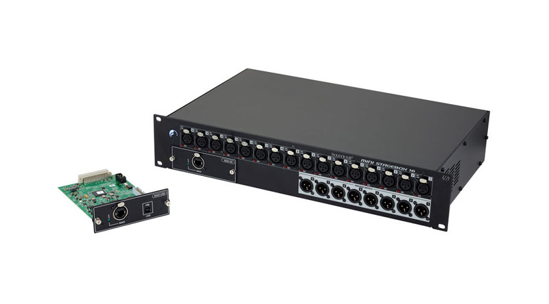 - Khe cắm thẻ cho các thẻ tùy chọn (AES / EBU, MADI (quang hoặc Cat5 / 7), Aviom, CobraNet, RockNet và 2013 AVB, DANTE, BluLink và thẻ ghi với Firewire / USB & ADAT)