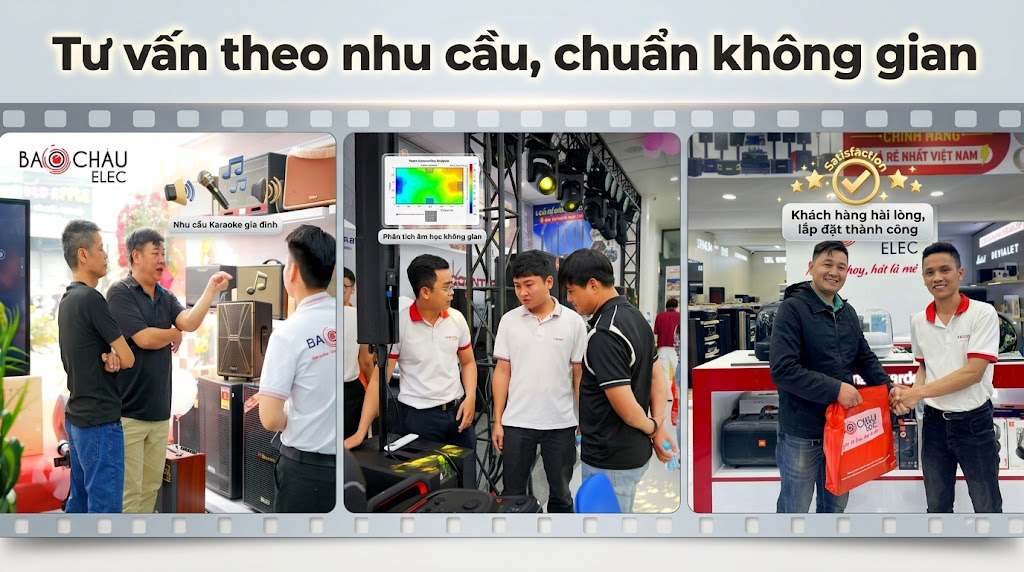 Bảo Châu Elec cũng hỗ trợ xây dựng cấu hình và các giải pháp âm thanh theo từng nhu cầu sử dụng. Đây là dấu hiệu rõ của một đơn vị có khả năng phối ghép trọn bộ dàn, giúp khách hàng mua đúng hệ thống chứ không chỉ mua từng món lẻ.