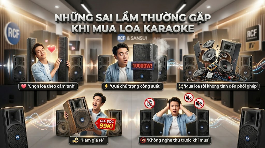 Khi chọn mua loa karaoke, nhiều người thường mắc phải những sai lầm phổ biến do thiếu thông tin hoặc chỉ chú ý đến giá và thương hiệu, dẫn đến việc bộ dàn không đạt được chất lượng âm thanh như mong muốn.