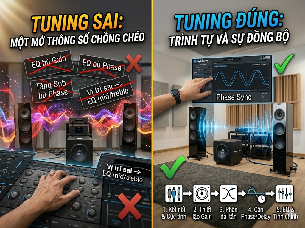 Một bộ dàn không hay đôi khi không phải vì loa dở, mà vì ghép sai thiết bị. Nếu trở kháng loa không phù hợp với khả năng tải của ampli hoặc cục đẩy, hệ thống có thể hoạt động thiếu ổn định, ra tiếng không đẹp, thậm chí ảnh hưởng đến độ bền thiết bị.