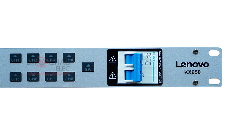 Hệ thống này sử dụng 1 aptomat bật tắt dùng để cấp nguồn cũng như ngắt nguồn điện của 8 ổ mặt sau