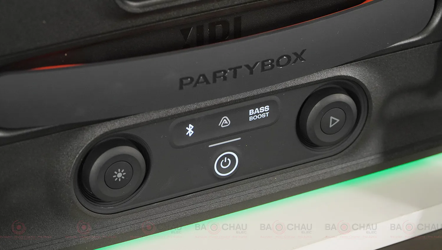 Các nút bấm trên loa sử dụng cao su mềm, độ nảy tốt, thao tác dễ dàng kể cả trong điều kiện ánh sáng yếu hoặc tay hơi ẩm. Hệ thống đèn LED phía trước được thiết kế hiện đại, tạo hiệu ứng đẹp mắt nhưng không gây chói, phù hợp cho cả trong nhà lẫn ngoài trời.
