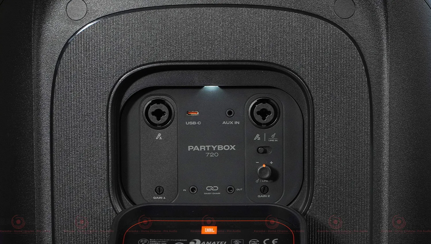Ngược lại, JBL PartyBox 720 sử dụng 2 viên pin JBL Li-ion 99,02Wh, cho thời gian phát nhạc liên tục đến 15 giờ - đủ cho những bữa tiệc kéo dài cả ngày. Loa cũng hỗ trợ sạc nhanh chỉ trong 3 giờ để sẵn sàng trở lại cuộc vui.