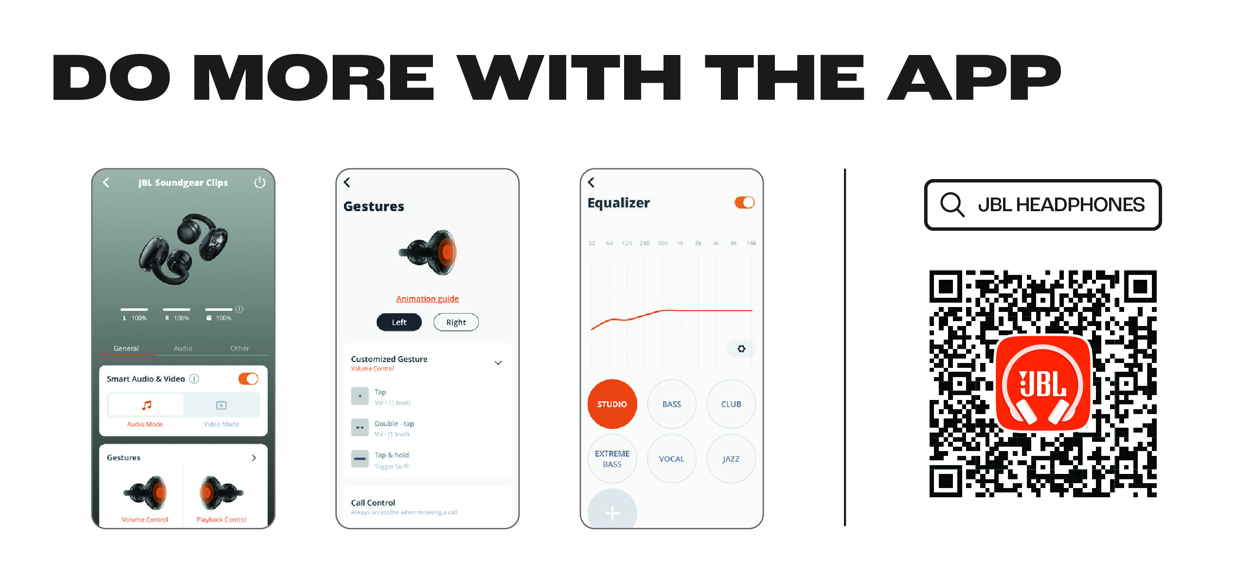 Ứng dụng JBL Headphones mang đến khả năng cá nhân hóa sâu rộng, cho phép bạn tinh chỉnh Soundgear Clips theo đúng phong cách nghe của mình. Giao diện trực quan, dễ sử dụng giúp ngay cả người mới cũng có thể tùy chỉnh nhanh chóng mà không gặp khó khăn.